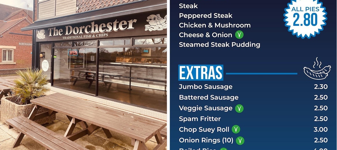The Dorchester Fish & Chips is open every day of the week, providing delicious fish and chips for lunch and dinner.